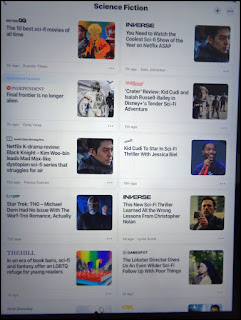 By clicking on any of the channel titles, you will get many articles on the topic you clicked on. So, for example, when I click on the title of the Science Fiction channel shown above, I get many articles about Science Fiction, not just the articles shown below, but many other Science Fiction articles I can reach by using finger-swiping to scroll the screen down:
